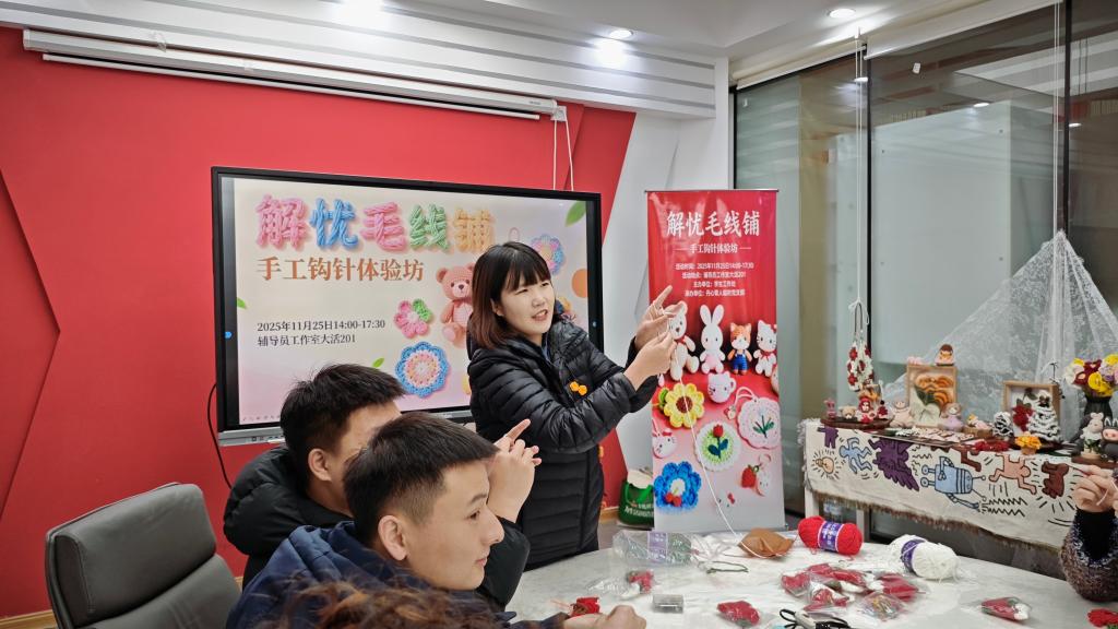 为丰富学生社区文化生活,深化党建引领社区育人实效,11月25日,学生工作处与丹心育人临时党支部在辅导员工作室举办了“解忧毛线铺”手工钩针体验坊。活动以象征初心与热爱的“小红花”为创作主题,让师生在编织中感受手工艺魅力,在互动交流中凝聚社区向心力,为文化节增添了一抹温暖亮眼的红色印记。