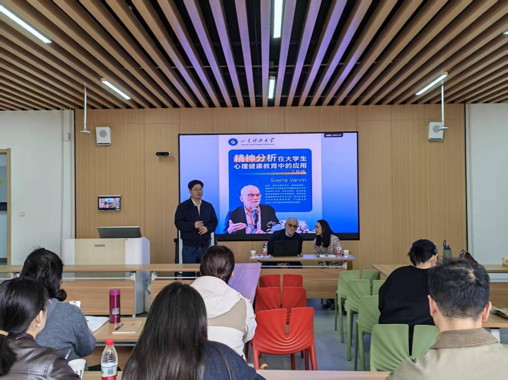4月20日,“精神分析在大学生心理健康教育中的应用”工作坊在J14-146成功举办。工作坊特邀挪威知名精神分析师Sverre Varvin教授担任主讲嘉宾,学生工作处处长尹立明主持工作坊。来自校内外的40余名心理咨询师、辅导员代表参会,共同探讨精神分析在大学生心理健康教育领域的实践路径。