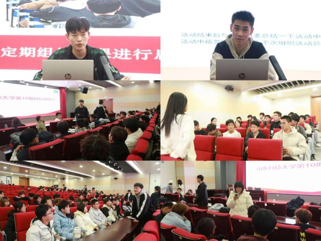 11月19日,山东科技大学第十期班长训练营结业仪式在图书信息中心求新讲堂顺利举行。仪式上,各组学员代表围绕培训日常与主题班会进行分享交流,并通过精心制作的视频回顾了训练营期间的精彩片段。