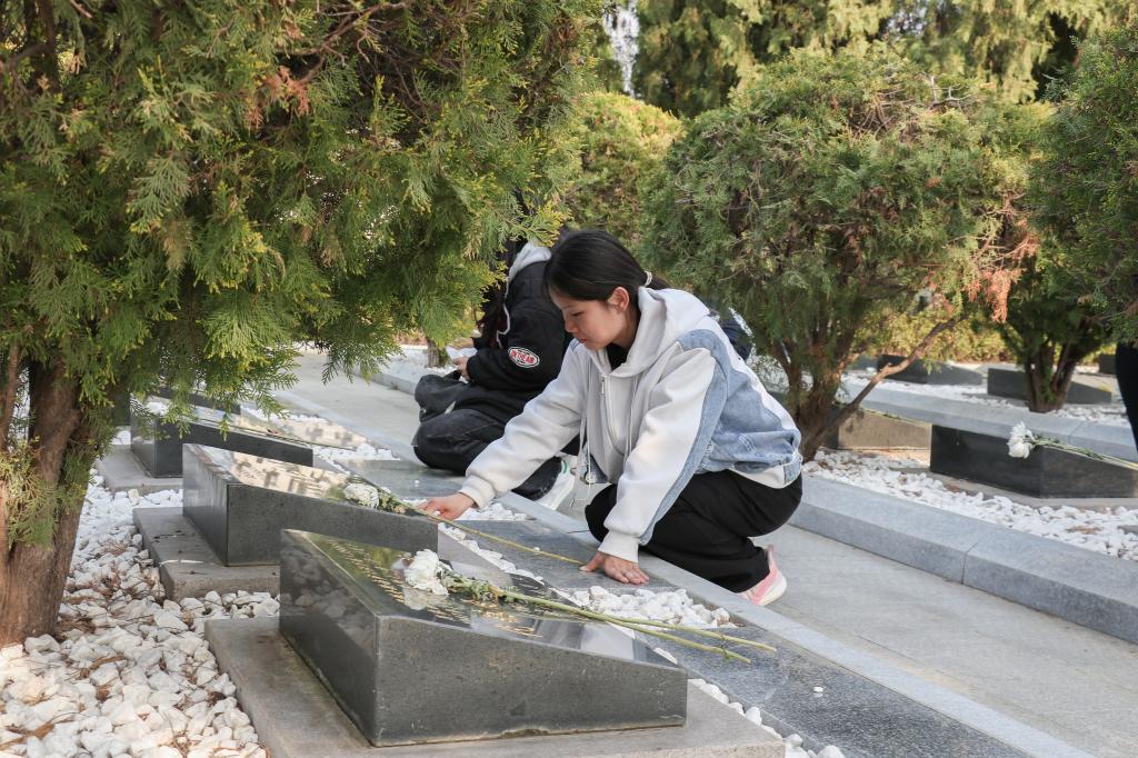 苍松翠柏挺拔,烈士陵园庄严肃穆,纪念碑巍然矗立。全体人员在纪念碑前整齐列队,肃立致敬,深切缅怀为民族独立、人民解放和国家富强献出宝贵生命的革命先烈,寄托无限哀思。学生代表向烈士纪念碑敬献菊花,朵朵鲜花寄托着对英烈的深切哀思。随后大家参观了烈士纪念馆,馆内珍贵的历史照片、锈迹斑斑的革命文物,详实的文字记载,生动再现了英烈们不畏牺牲、英勇抗争的光辉事迹,让每一位同学都深刻感悟到革命胜利的来之不易、和平幸福生活的弥足珍贵,接受了一次深刻的红色精神洗礼。参观结束后,同学们手持白布,小心翼翼地擦拭英雄墓碑,以实际行动表达对革命英烈的缅怀与敬仰。