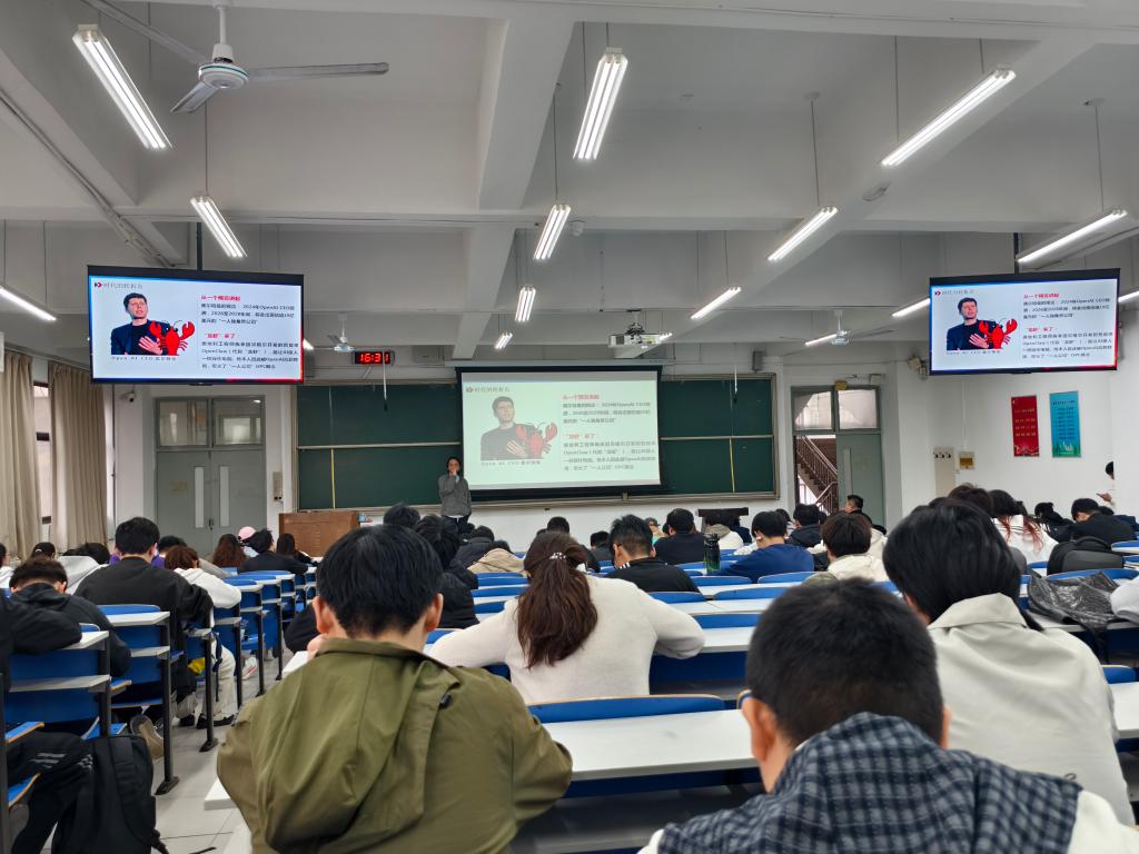 活动中,西海岸新区人社局工作人员单正奥结合新区产业发展布局和毕业生就业需求,围绕新区毕业生留区就业激励、人才补贴、住房保障、落户服务等政策进行详细解读,明确申请条件与办理流程,为毕业生留区发展提供清晰政策指引。青岛直播带岗数智创业园负责人刘青聚焦AI时代创业新形势,为毕业生带来了“OPC轻量化创业新范式”主题分享。他结合当下新媒体行业发展趋势,从AI智能工具应用、新媒体人力资源赛道选择、创业成本与风险防控等方面进行实操指导,引导学生树立科学的创业观念,提升创业实战能力。