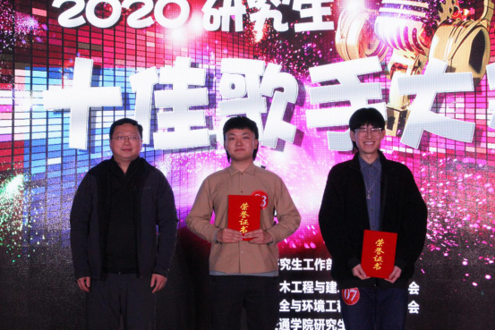 经过第二轮的“歌王争霸”环节,交通学院刘政泽凭借出色的唱功摘得桂冠,艺术学院谷文龙荣获亚军,艺术学院陈淑静获得季军。此外,经过前期的网络投票环节,土建学院修积鑫获得最佳人气奖。比赛结束,参会评委、嘉宾和全体工作人员合影留念,共同庆祝本次研究生十佳歌手大赛圆满落幕。